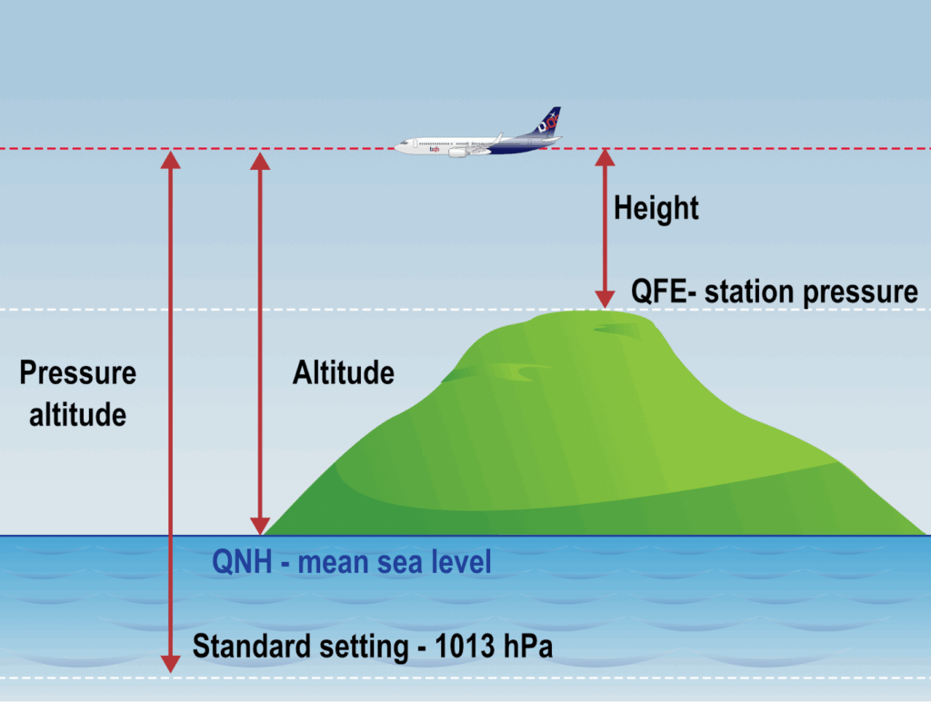 Aircraft are equipped with a device called an altimeter, which indicates the vertical distance of the airplane with respect to a specific datum. The datum it refers to, is depending on the barometric setting applied to the altimeter: